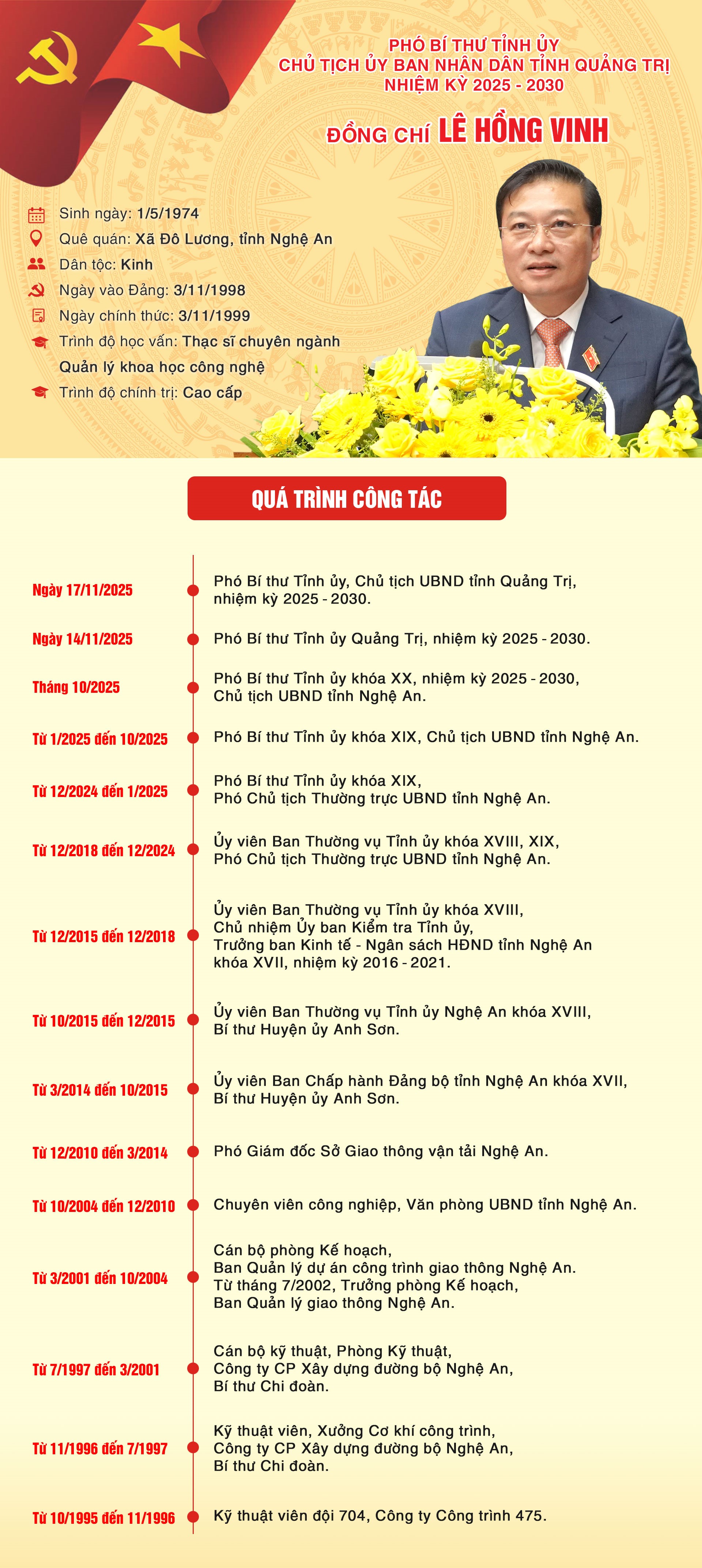 Ngày 17/11/2025, HDND tỉnh Quảng Trị đã bầu đồng chí Lê Hồng Vinh, Phó Bí thư Tỉnh ủy giữ chức Chủ tịch UBND tỉnh Quảng Trị, nhiệm kỳ 2021-2026.