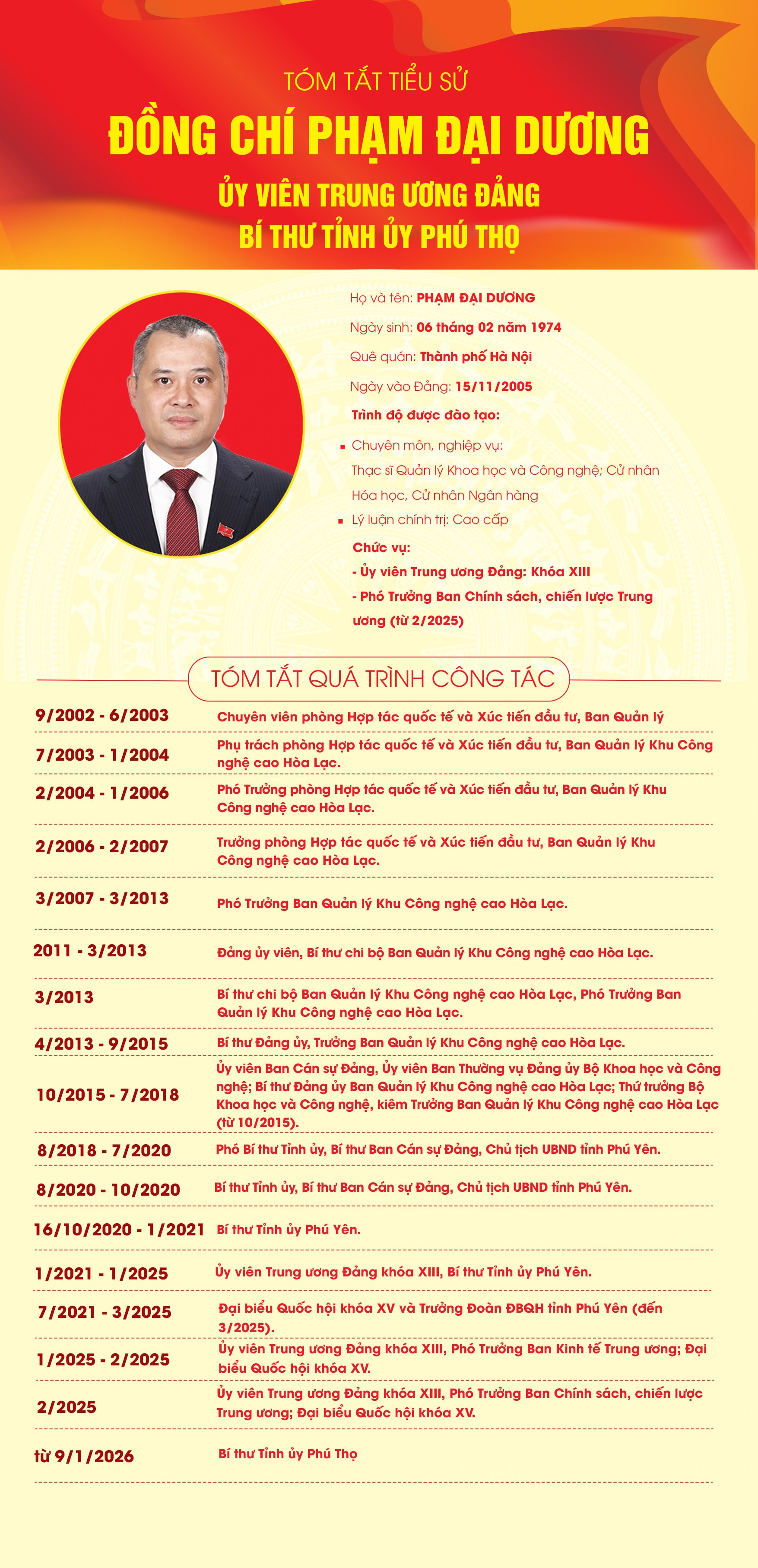 Tiểu sử đồng chí Phạm Đại Dương, Bí thư Tỉnh ủy Phú Thọ