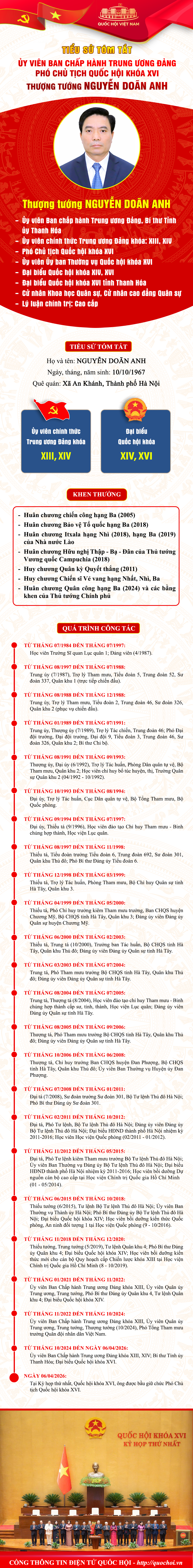 Cổng Thông tin điện tử Chính phủ trân trọng giới thiệu Tiểu sử tóm tắt Phó Chủ tịch Quốc hội khóa XVI, Thượng tướng Nguyễn Doãn Anh.