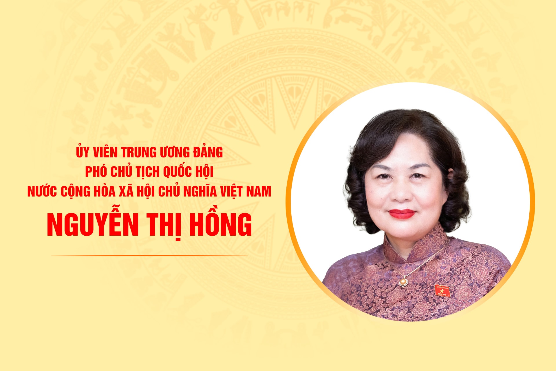 Ngày 06/04/2026Tại Kỳ họp thứ Nhất, Quốc hội Khóa XVI, được Quốc hội bầu giữ chức Phó Chủ tịch Quốc hội nước Cộng hòa xã hội chủ nghĩa Việt Nam.