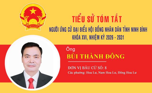 Báo Ninh Bình điện tử trân trọng giới thiệu tóm tắt tiểu sử ứng cử viên đại biểu Hội đồng nhân dân tỉnh Ninh Bình nhiệm kỳ 2026-2031 Bùi Thành Đông, thuộc Đơn vị bầu cử số 8.