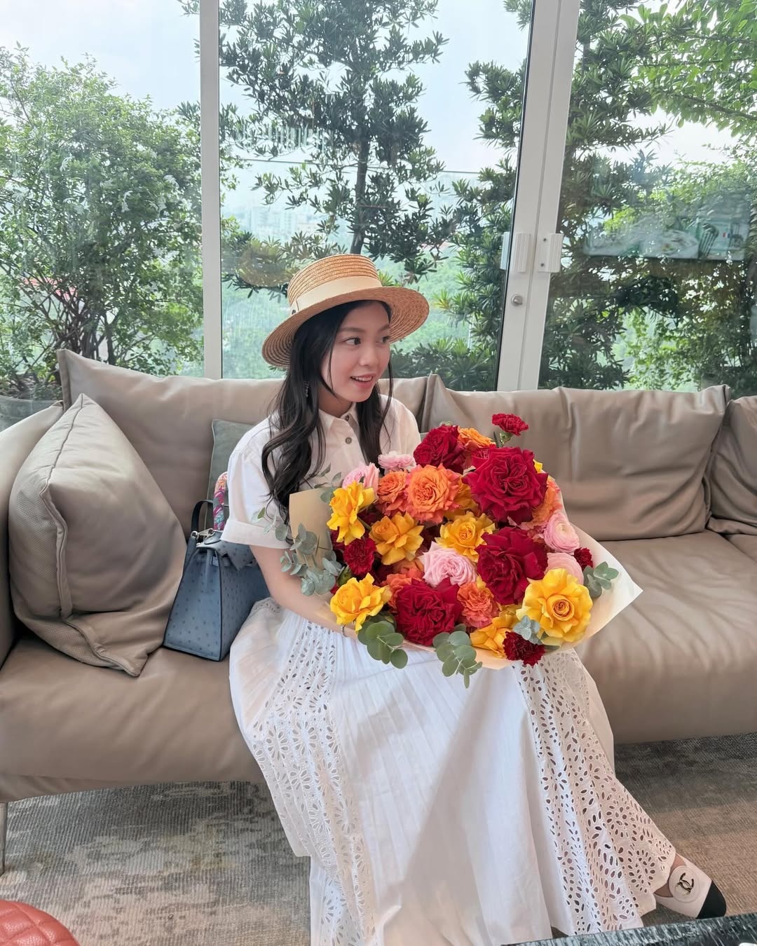 Cô từng xách một chiếc Hermès Kelly Himalaya trong chuyến du lịch nghỉ dưỡng hồi năm ngoái. Túi xách được làm từ da cá sấu mang tên Himalaya của thương hiệu danh tiếng Hermès là niềm khao khát của nhiều tín đồ hàng hiệu. Tại Việt Nam, chúng còn có biệt danh là “Hermès bạch tạng”, nhằm ám chỉ chiếc túi được làm từ da của loài cá sấu bị bạch tạng, nhưng thực tế không phải vậy.