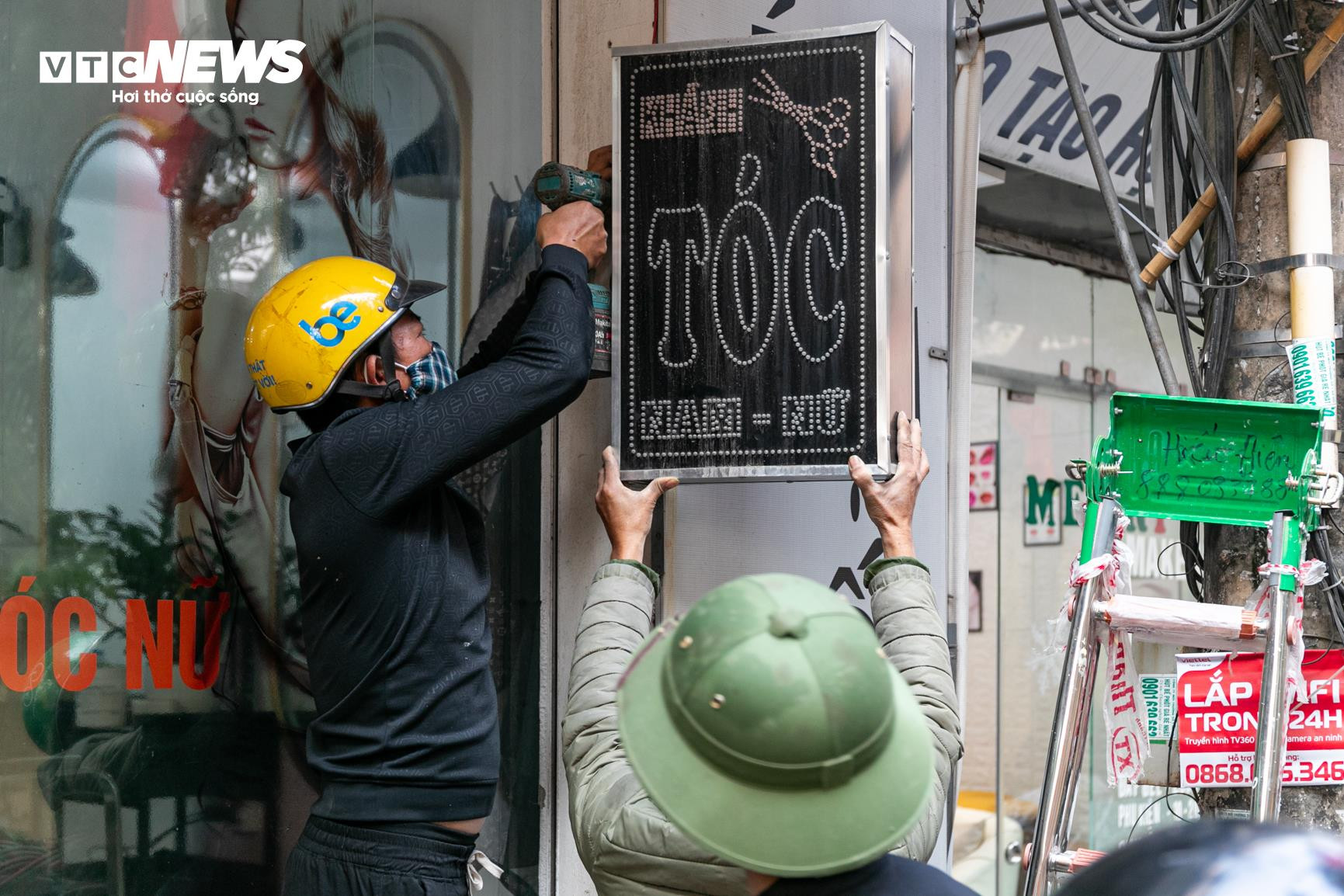 Cũng trong sáng 13/1, tổ công tác tổ chức tháo dỡ các bảng hiệu, mái che vi phạm quy định về trật tự đô thị trên địa bàn phường Đại Mỗ.