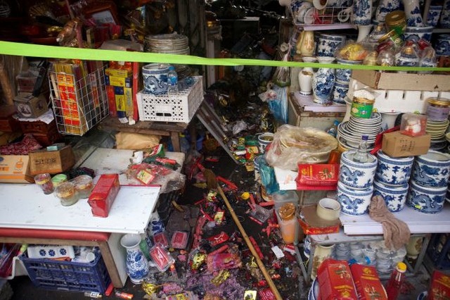 Gian hàng đồ thờ của chị G sau vụ cháy. Ảnh: Ngọc Anh