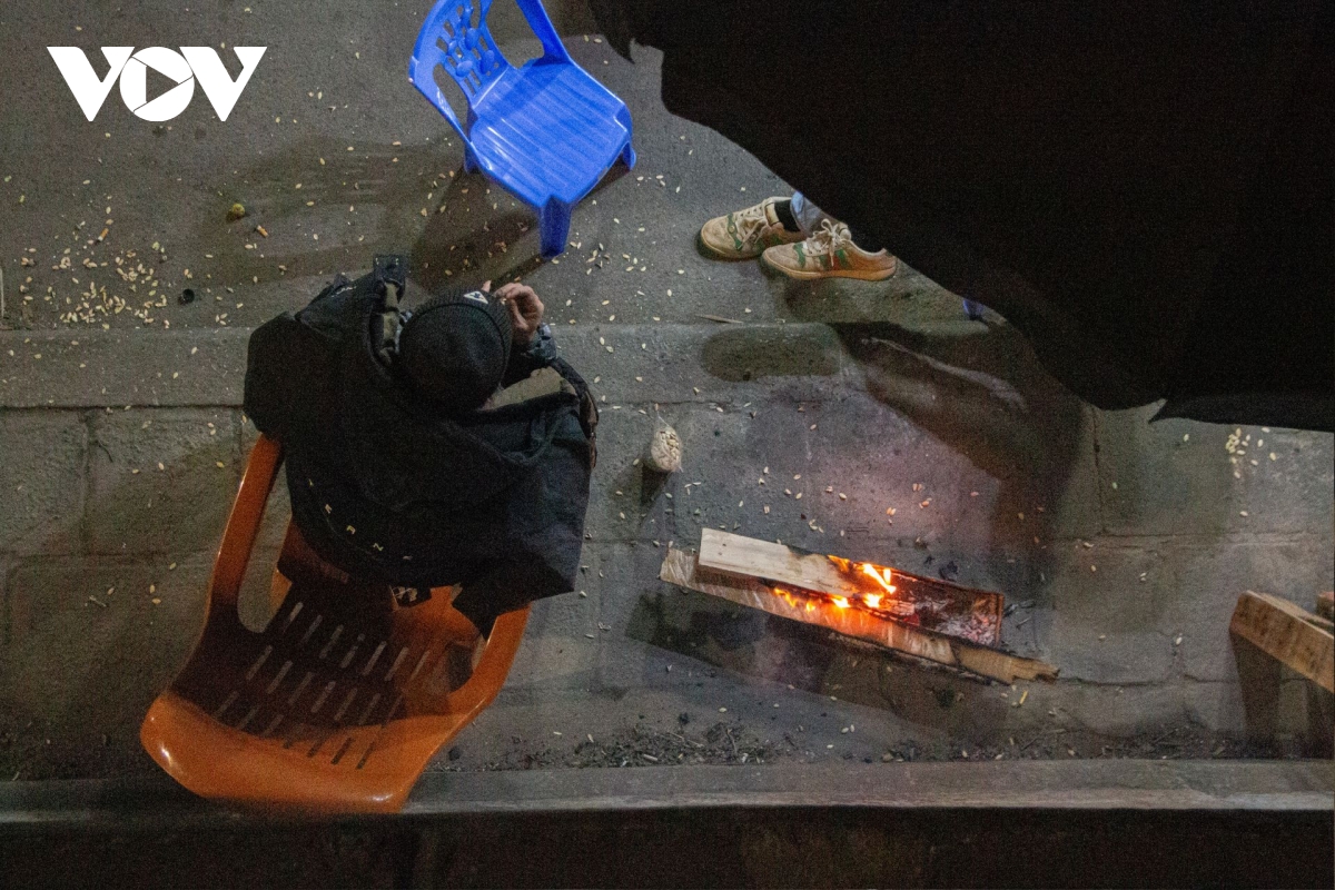 Để chống chọi với giá rét cắt da cắt thịt, nhiều tiểu thương chọn cách đốt lửa để sưởi ấm.
