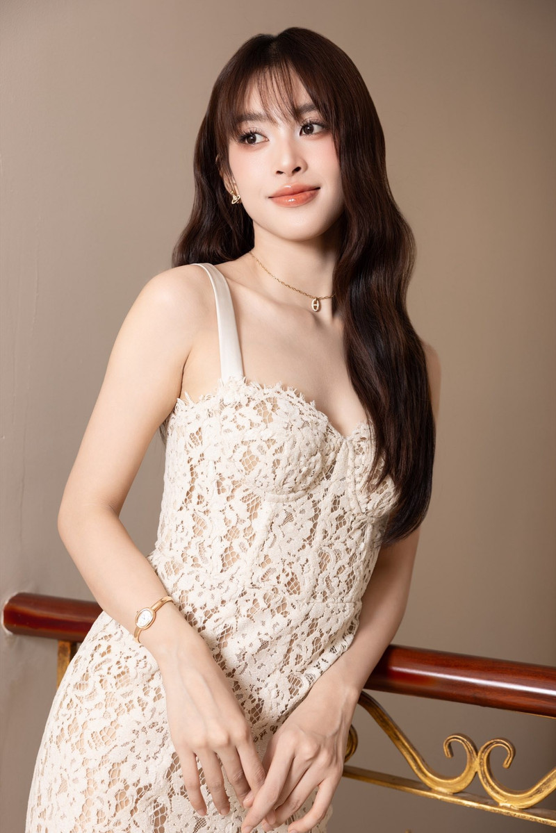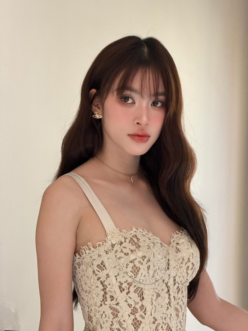 Sự kết hợp hài hòa giữa mái tóc mới lạ và lớp trang điểm nhẹ nhàng giúp Tiểu Vy trông như “nàng thơ” giữa đời thực, vừa ngọt ngào vừa đầy sức sống.