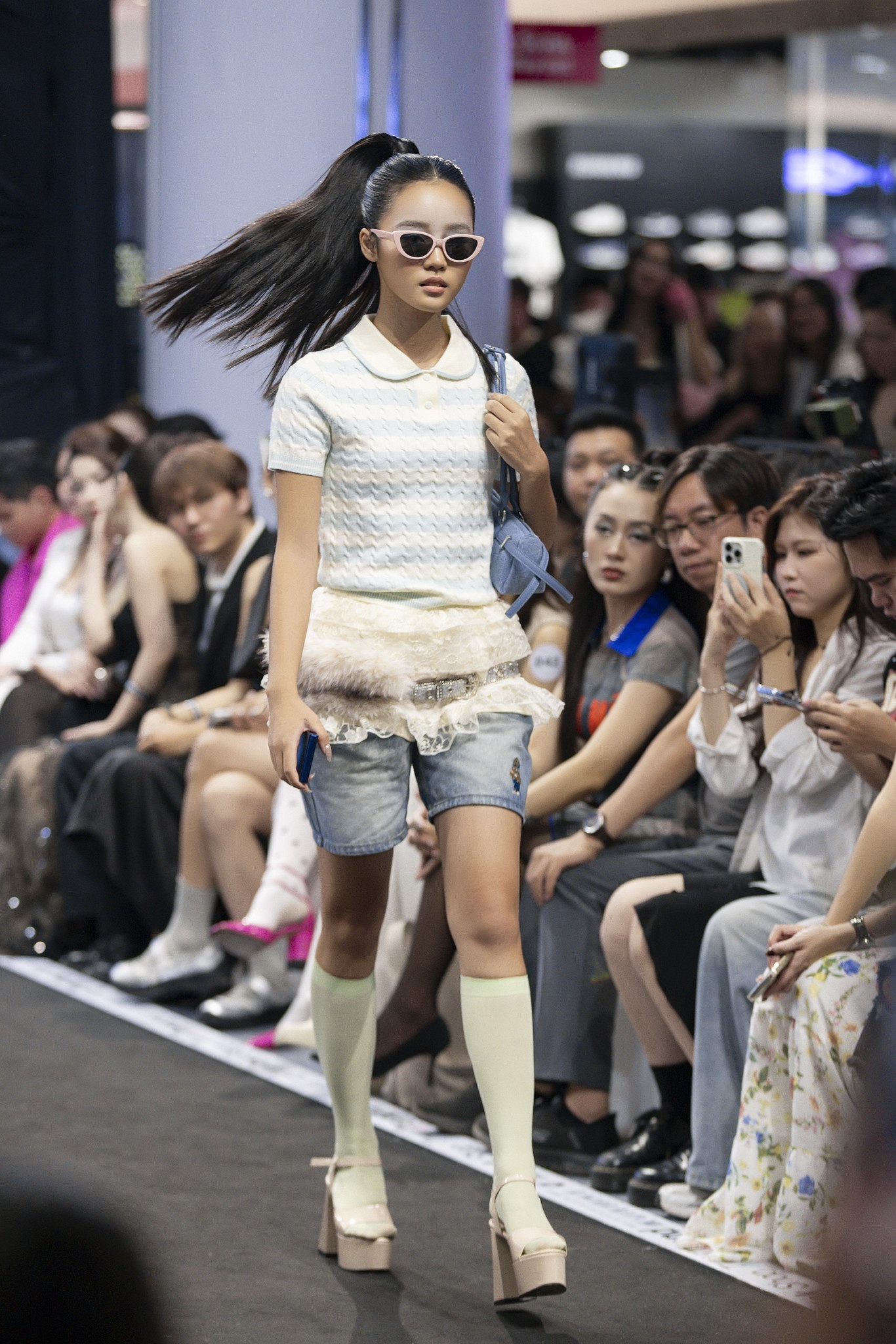 Dưới sự dẫn dắt của Giám đốc catwalk Tuyết Lan, sàn diễn có sự góp mặt của nhiều gương mặt: Á hậu Miss Universe Việt Nam 2024 Vũ Thúy Quỳnh, cùng các content creator nổi tiếng trên TikTok như Thu Hà, Ngọc Kem, Mèo Trái Đất. Sự hiện diện song song của người mẫu chuyên nghiệp và nhà sáng tạo nội dung cho thấy runway không còn là không gian khép kín, mà đã trở thành một sân chơi cộng đồng.