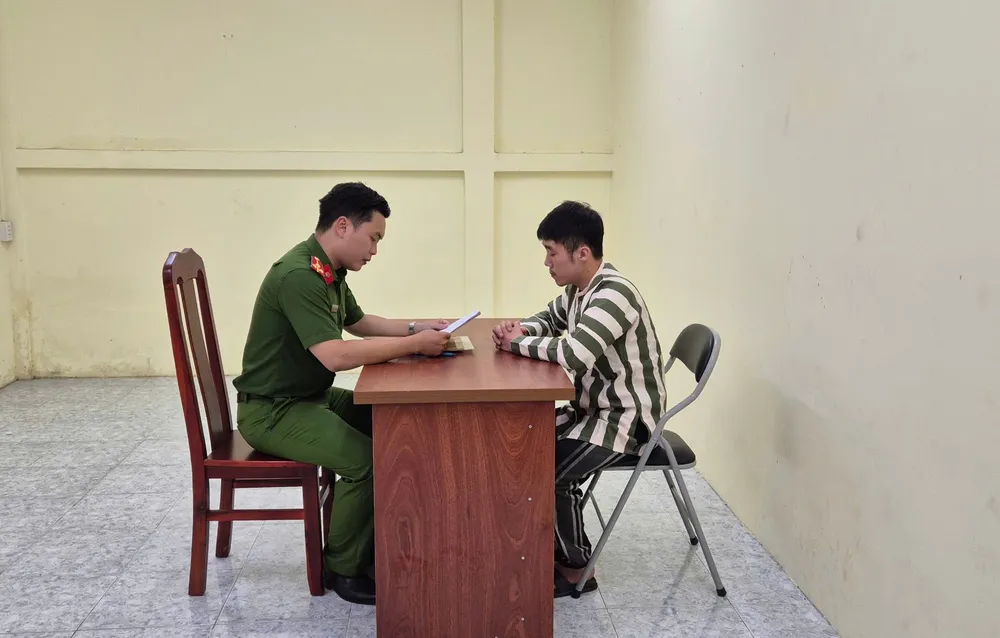 Công an lấy lời khai với Đoàn Quốc Việt. Ảnh: CA