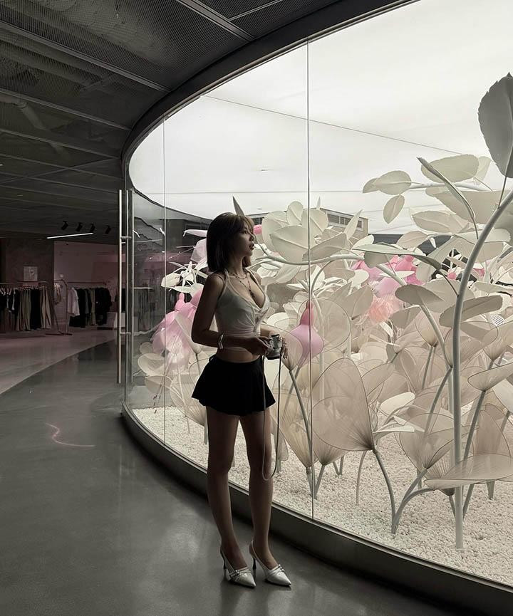 Với mái tóc ngắn nhuộm màu sáng và trang điểm nhẹ nhàng theo phong cách "búp bê", Hà Phương Boo thể hiện được sự cân bằng giữa nét đáng yêu và vẻ gợi cảm trưởng thành.