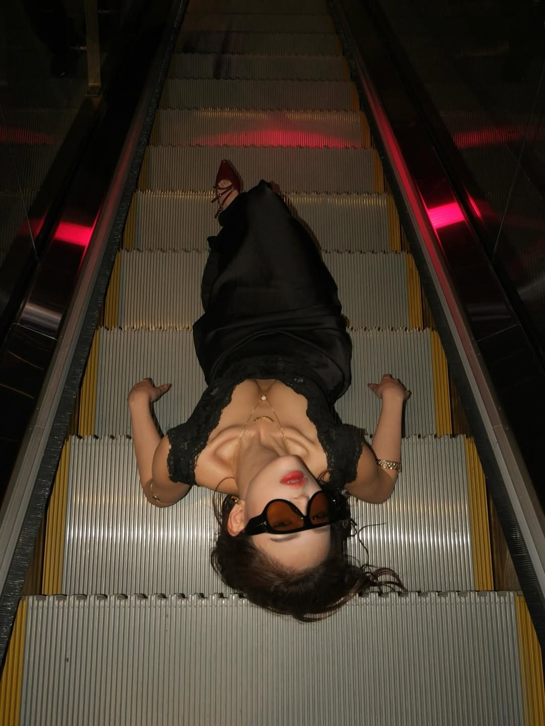 Hoàng Yến đã khéo léo hoàn thiện bộ cánh đêm lộng lẫy bằng những phụ kiện đi kèm vô cùng thời thượng như chiếc kính râm hay vòng tay kim loại. (Ảnh: IGNV)