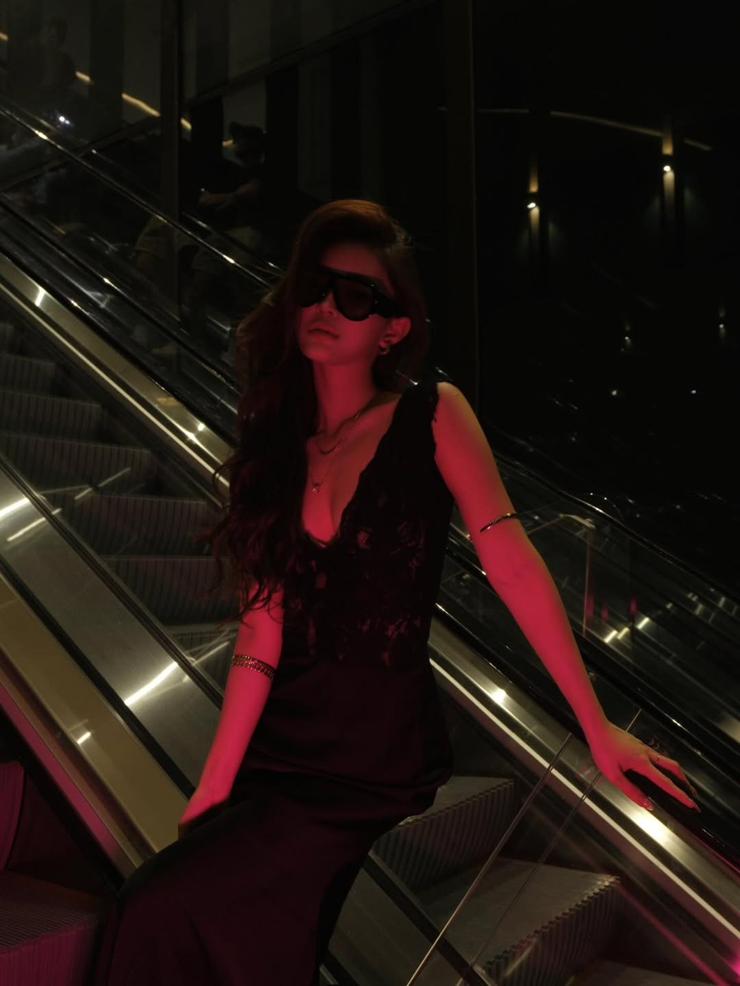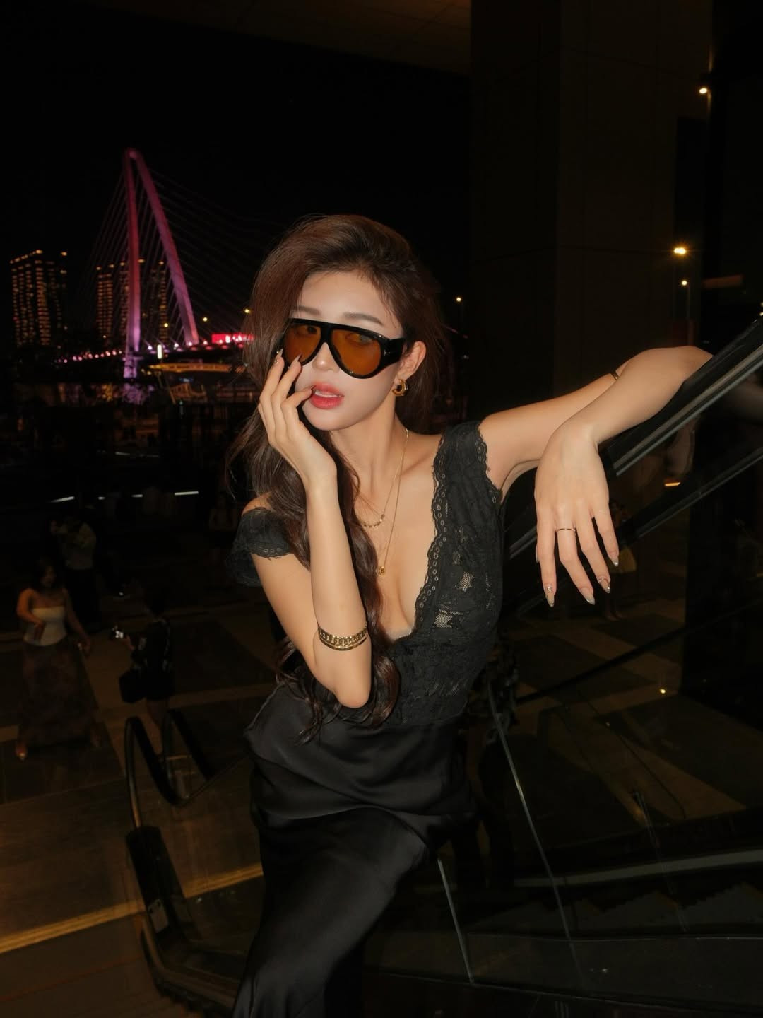 Bộ ảnh được thực hiện trong không gian đêm sang trọng, với ánh đèn lung linh, tạo nên một hiệu ứng thị giác ấn tượng. (Ảnh: IGNV)