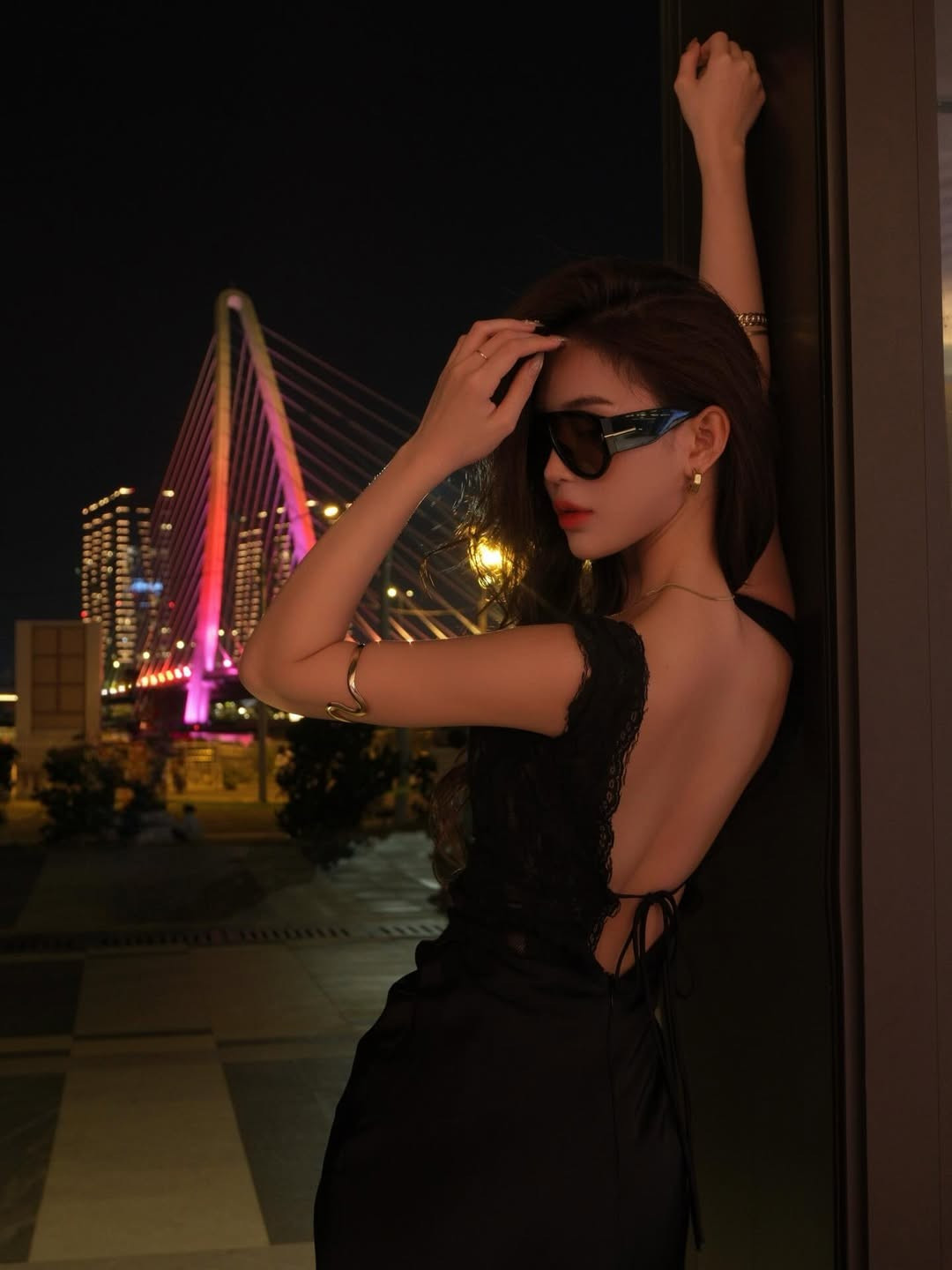 Chiếc đầm đen ôm sát cơ thể, đặc biệt ở vòng eo, đã làm nổi bật những đường cong "chết người" và vóc dáng săn chắc, cân đối của Tiktoker 2K2 này. (Ảnh: IGNV)