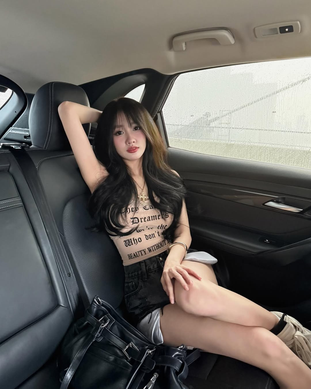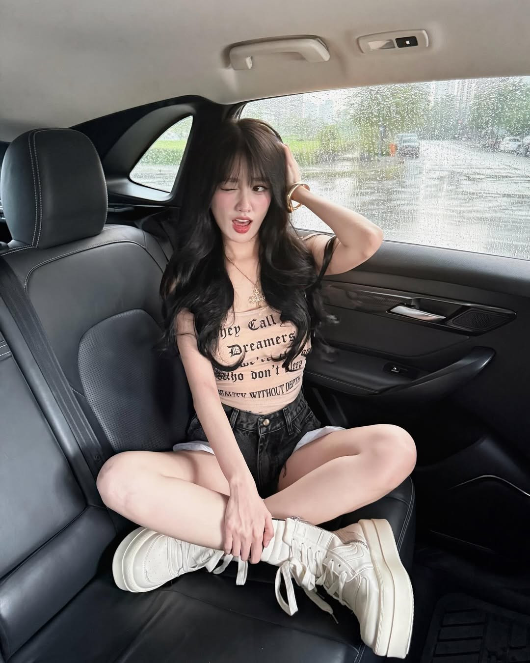 Mới đây, cô nàng Gen Z này vừa mới đăng tải bộ ảnh check-in trên chiếc xế hộp, khoe trọn vóc dáng nóng bỏng với đôi chân dài cùng nhan sắc xinh đẹp. (Ảnh: IGNV)