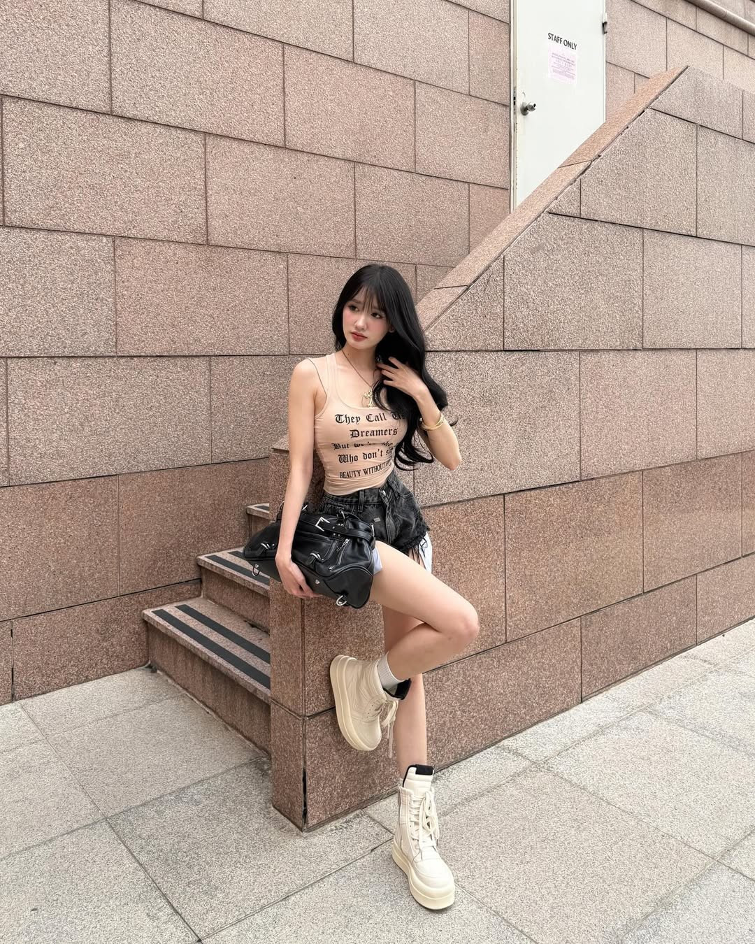 Điểm nhấn không thể bỏ qua là đôi boots đế dày màu sáng. Đây là lựa chọn hoàn hảo để tăng thêm chiều cao và làm nổi bật phong cách thời trang cá tính. (Ảnh: IGNV)