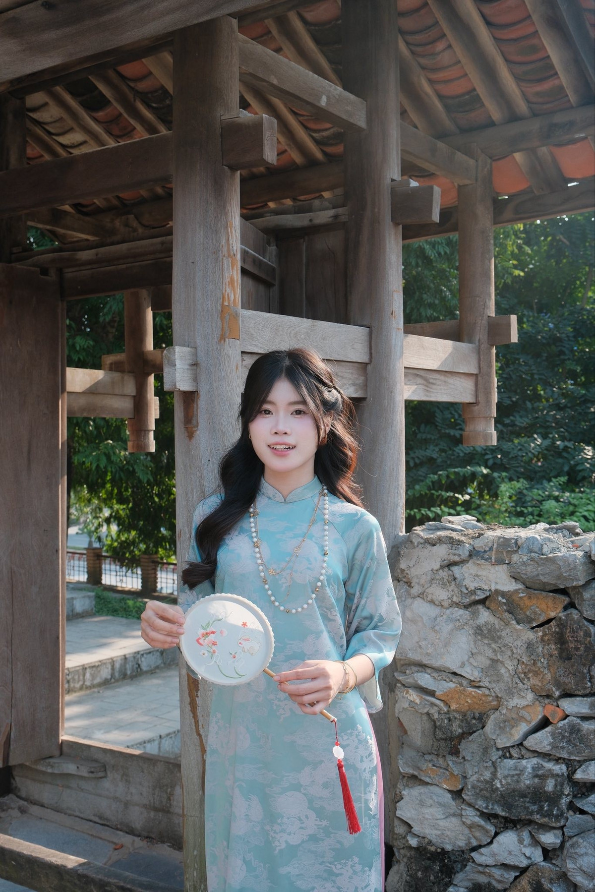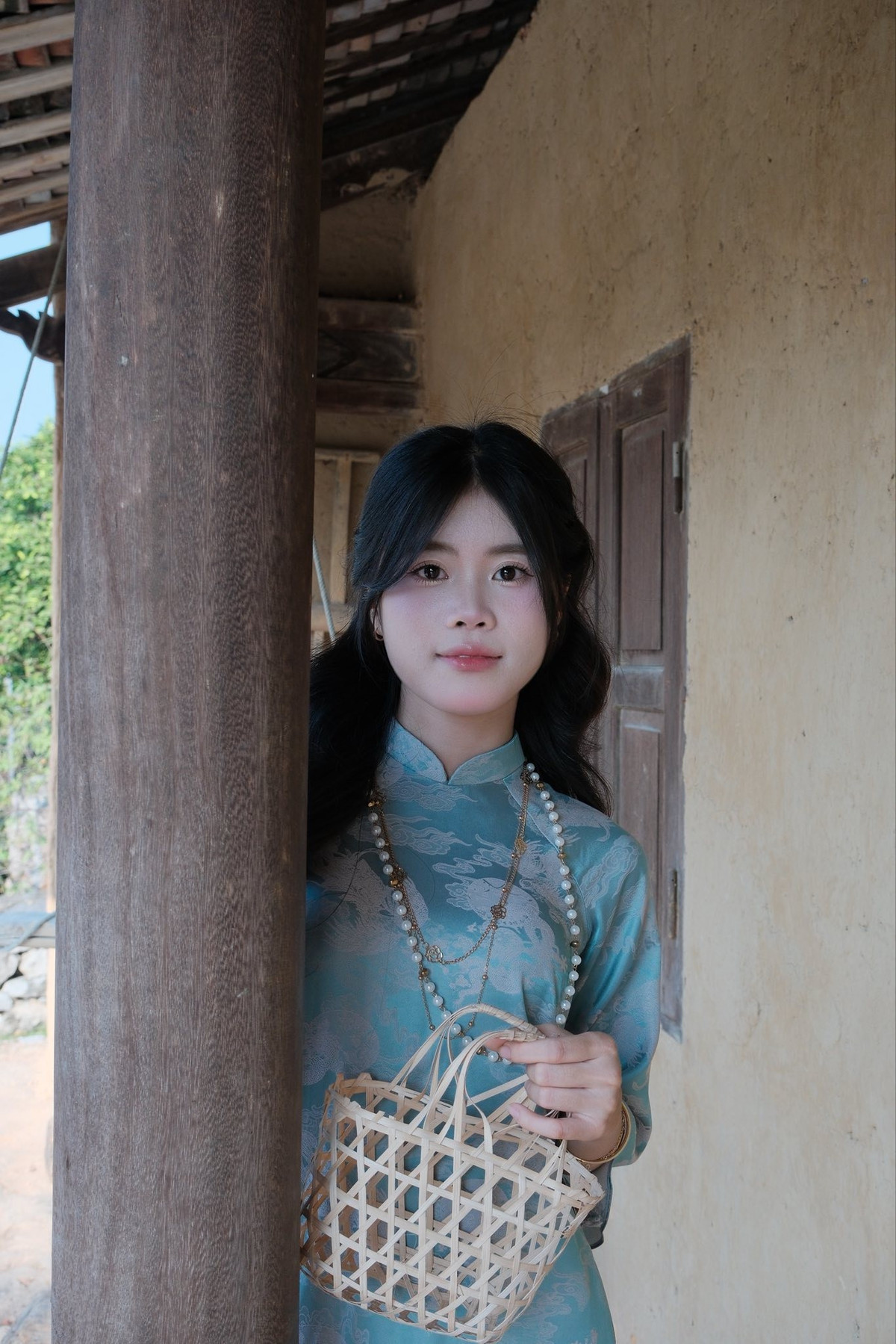 Cô nàng dịu dàng, đằm thắm với tà áo dài truyền thống trong bộ ảnh mới được đăng tải. (Ảnh: FBNV)