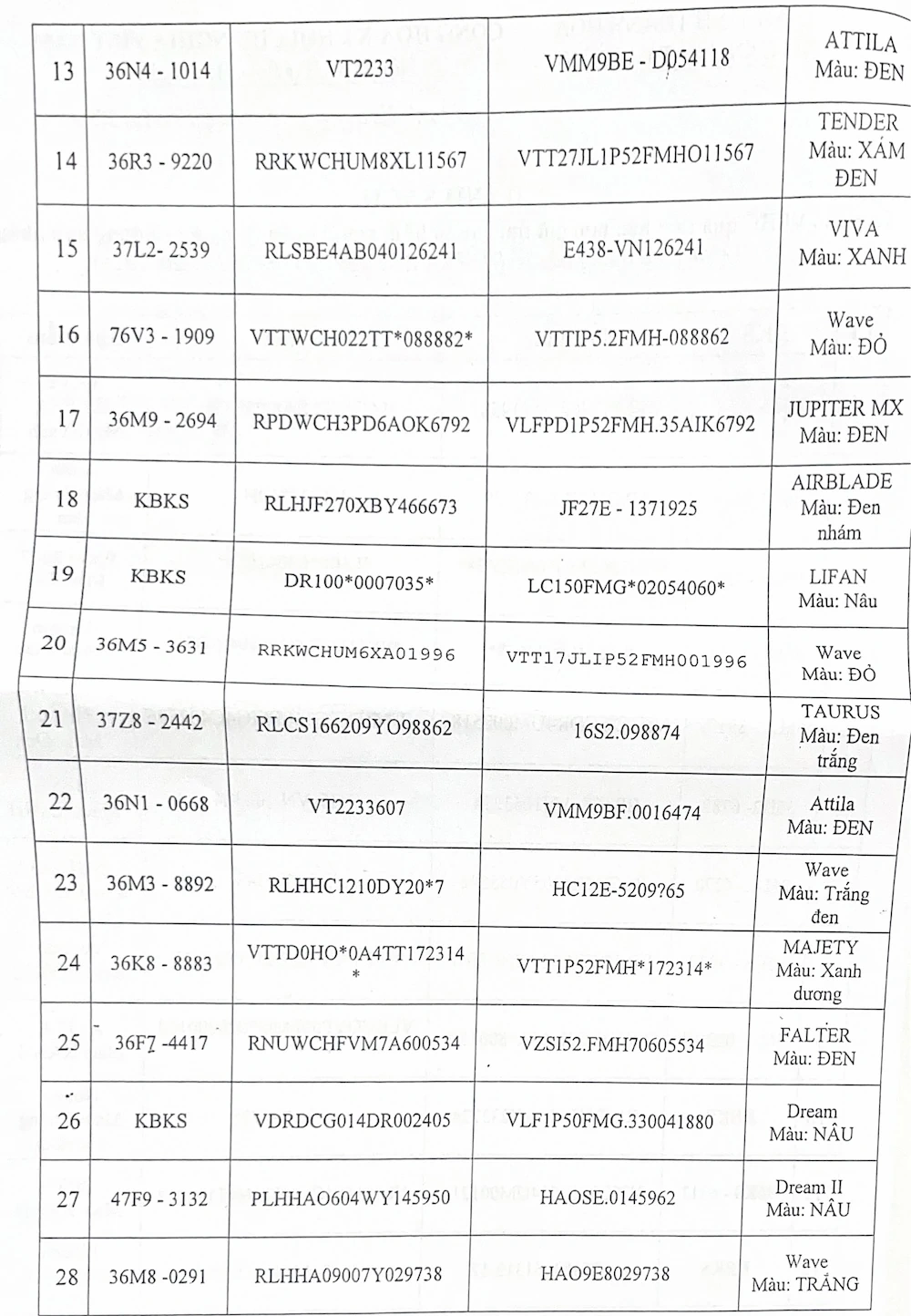DANH SÁCH CÁC PHƯƠNG TIỆN VI PHẠM HÀNH CHÍNH ĐÃ QUÁ THỜI HẠN TẠM GIỮ