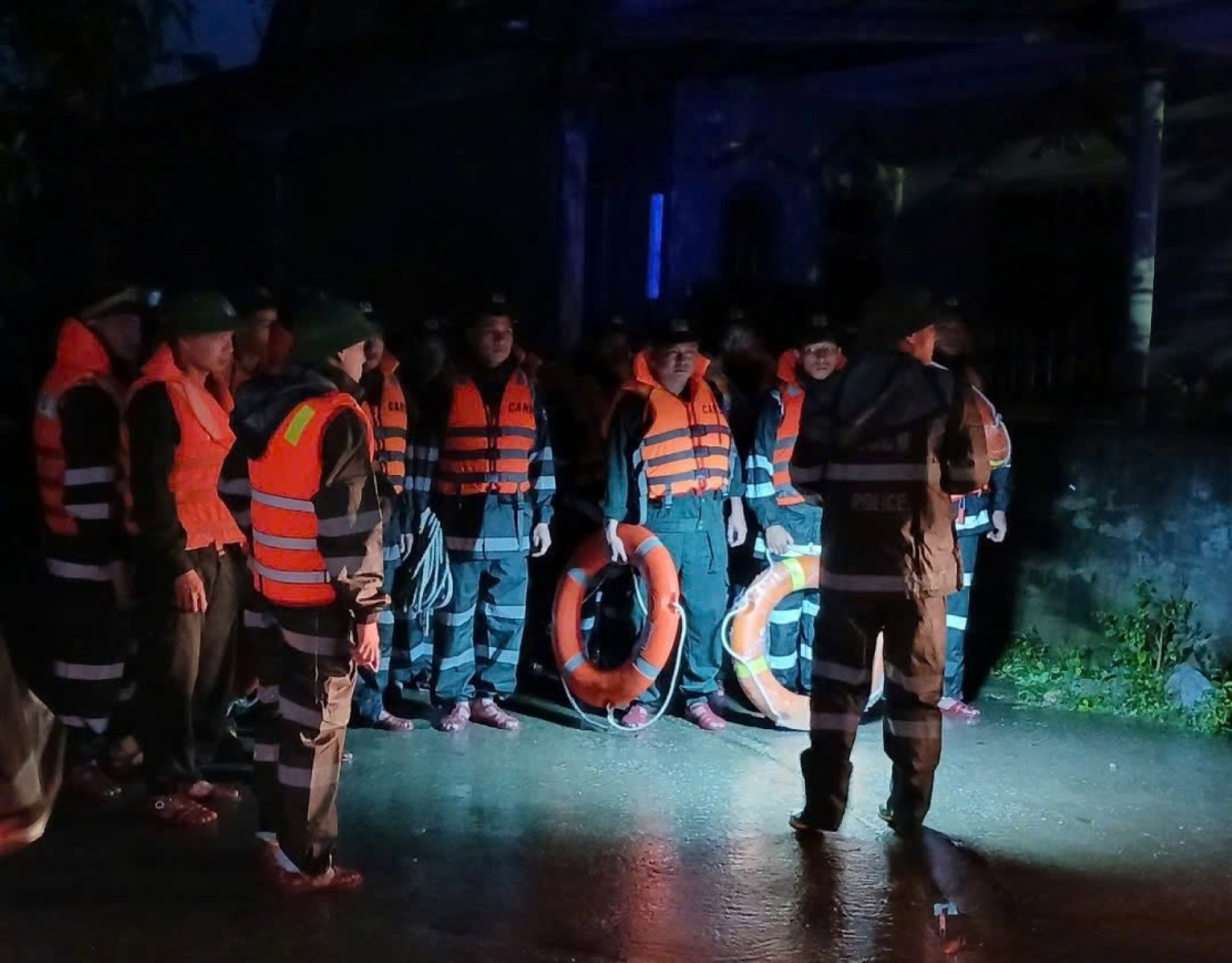 Công an xã Quảng Trạch cùng các lực lượng triển khai tìm kiếm cháu nhỏ bị nước cuốn trôi