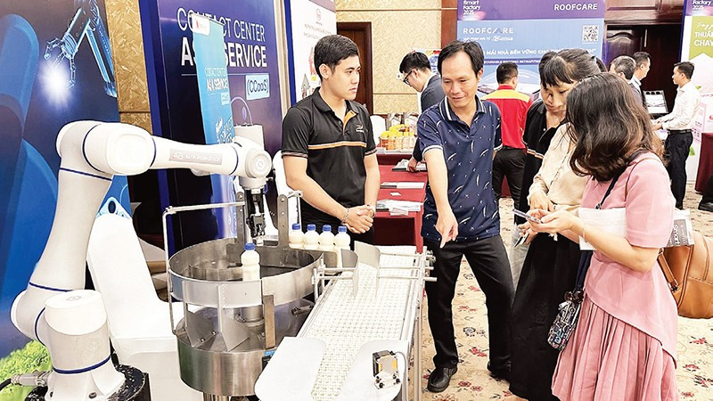 Đại biểu tham quan, tìm hiểu một mô hình dây chuyền sản xuất thông minh tại một hội thảo liên quan mới đây.
