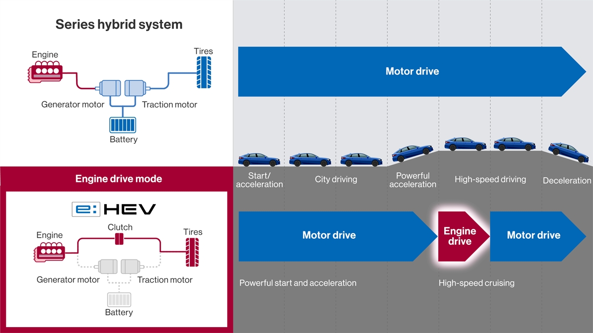 Tuy nhiên, do cấu trúc phức tạp và hiệu suất chưa tối ưu ở dải tốc độ cao, hybrid nối tiếp hiện vẫn là lựa chọn mang tính đặc thù, thường xuất hiện trên các mẫu xe cỡ nhỏ, định hướng đô thị hoặc theo triết lý công nghệ riêng của từng hãng.