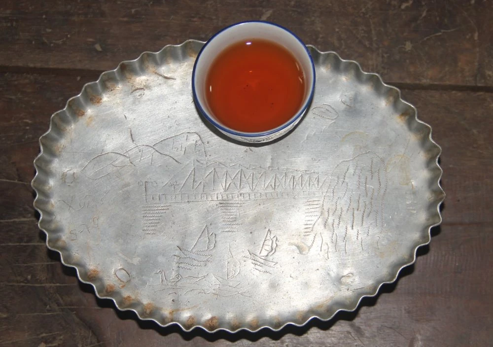 Chiếc khay cốc chén là kỷ vậy của ông Hà Văn Cấm, theo ông là được chế tác từ một mảnh nhôm trong máy bay địch bị bắn hạ.