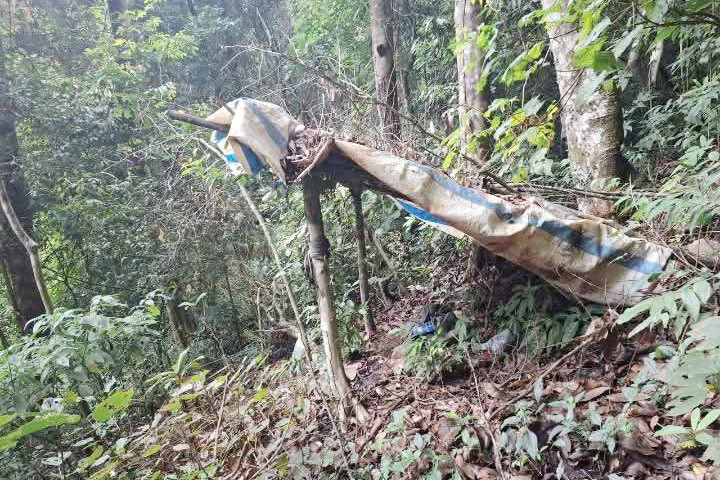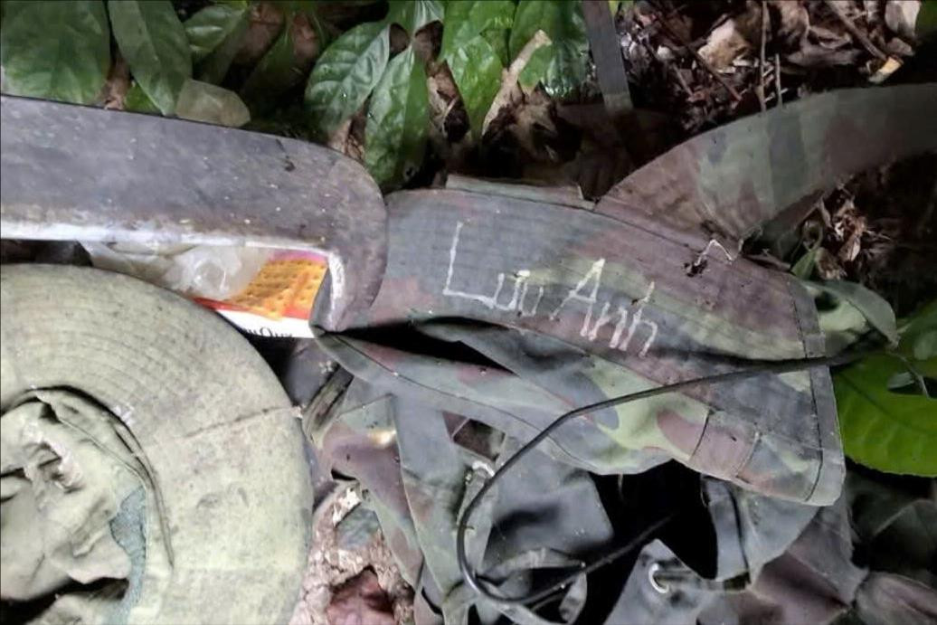 Tại khu vực này, tổ công tác phát hiện một căn chòi được dựng sơ sài. Bên trong có một bộ hài cốt và một số vật dụng cá nhân còn sót lại.
