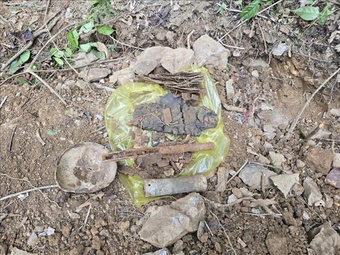 Các di vật tìm thấy cùng với hài cốt liệt sĩ. Ảnh: TTXVN phát