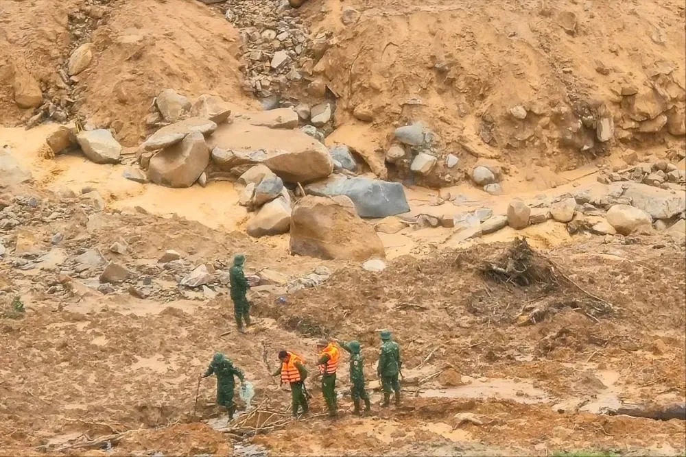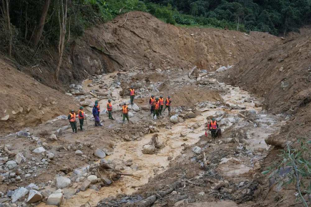 Lực lượng chức năng tìm kiếm các nạn nhân mất tích.