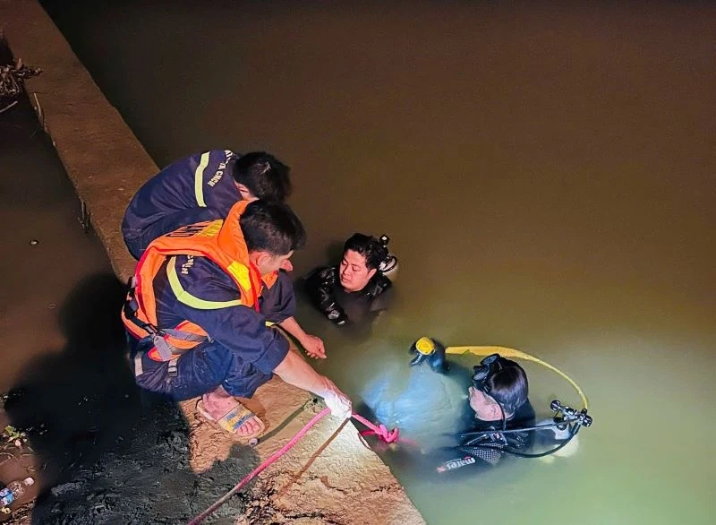 Ngay sau đó, Phòng Cảnh sát PCCC&CNCH đã huy động phương tiện, thiết bị chuyên dụng, cùng cán bộ, chiến sĩ của Đội CC&CNCH khu vực 4 nhanh chóng đến hiện trường tiến hành trinh sát, triển khai phương án tìm kiếm thi thể nạn nhân. Do đêm tối, dưới nước thiếu ánh sáng, địa hình lòng sông lồi lõm phức tạp, công tác tìm kiếm đã gặp nhiều khó khăn.