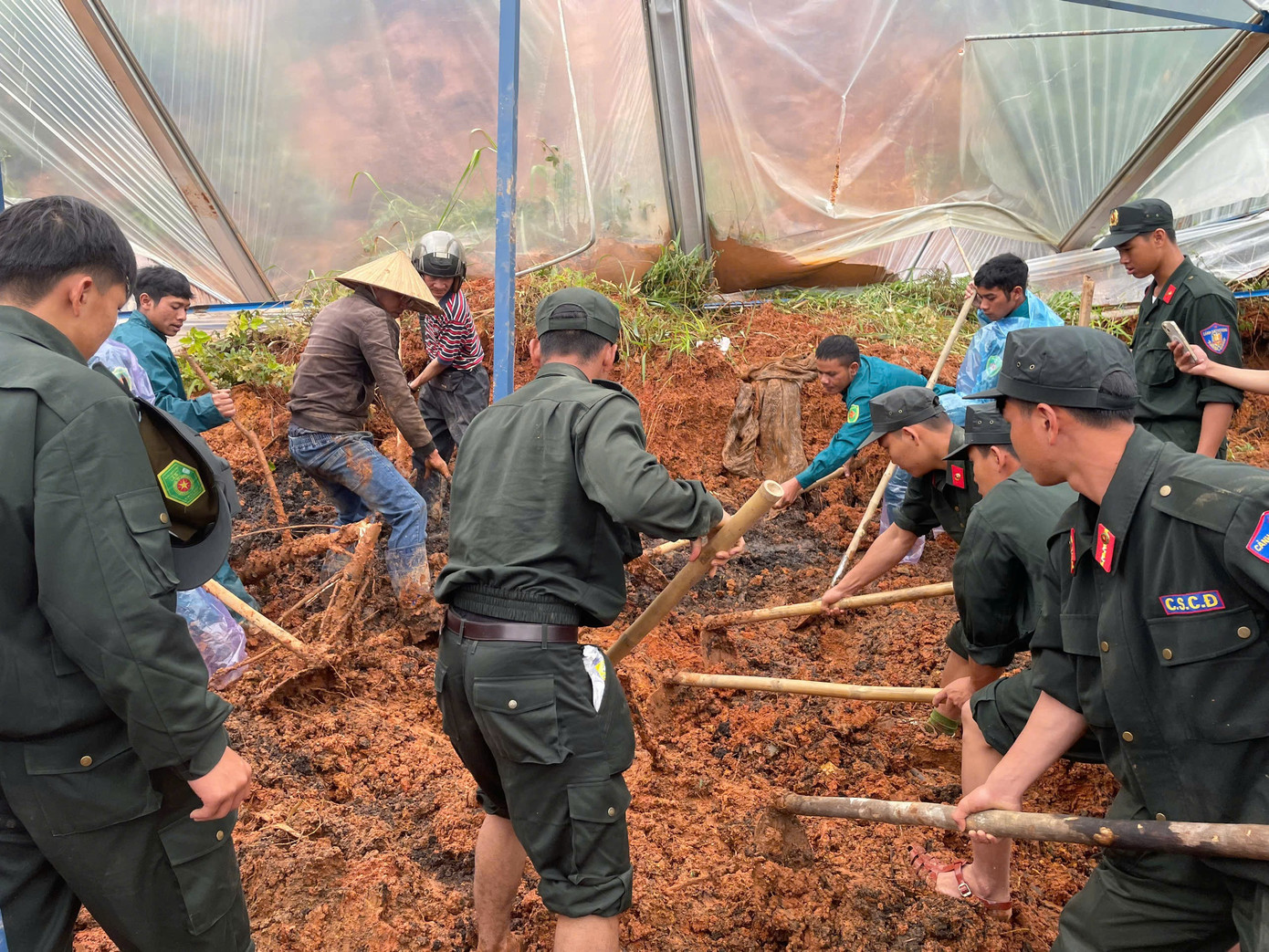 Ngay khi vụ việc xảy ra, lực lượng Cảnh sát Cơ động Công an tỉnh Lâm Đồng được điều động đến hiện trường, phối hợp với chính quyền địa phương tổ chức tìm kiếm trong điều kiện thời tiết xấu và nguy cơ sạt trượt tiếp diễn.