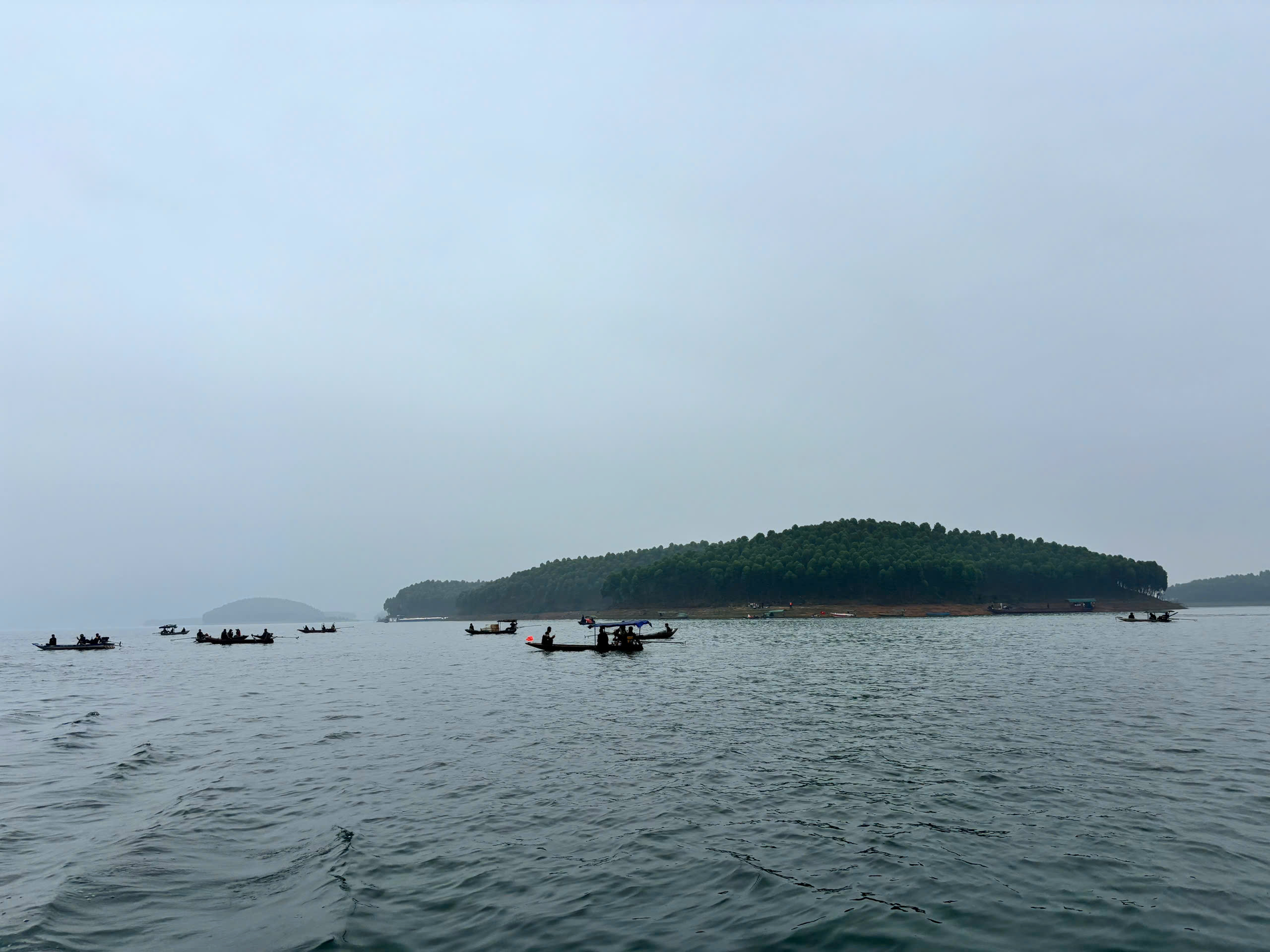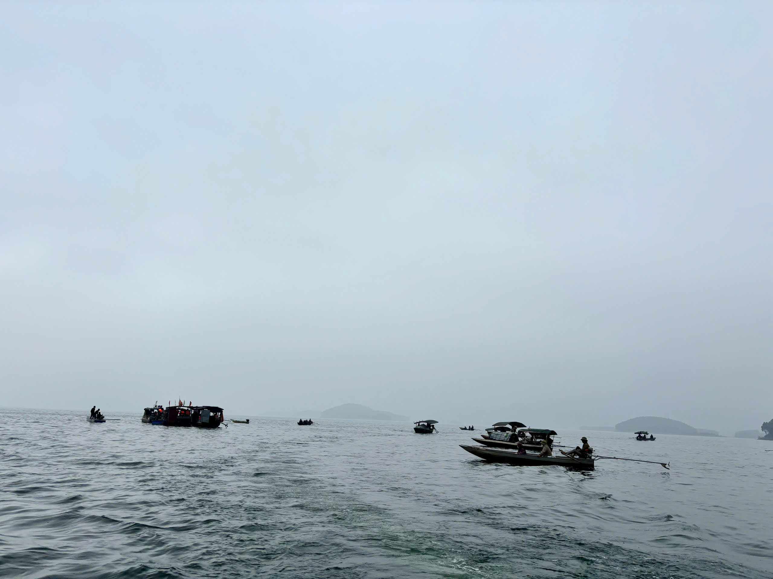Lòng hồ Thác Bà có mực nước sâu, gây khó khăn cho công tác tìm kiếm