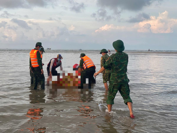 Thi thể anh S. được đưa vào bờ sau 2 ngày bị sóng cuốn trôi.