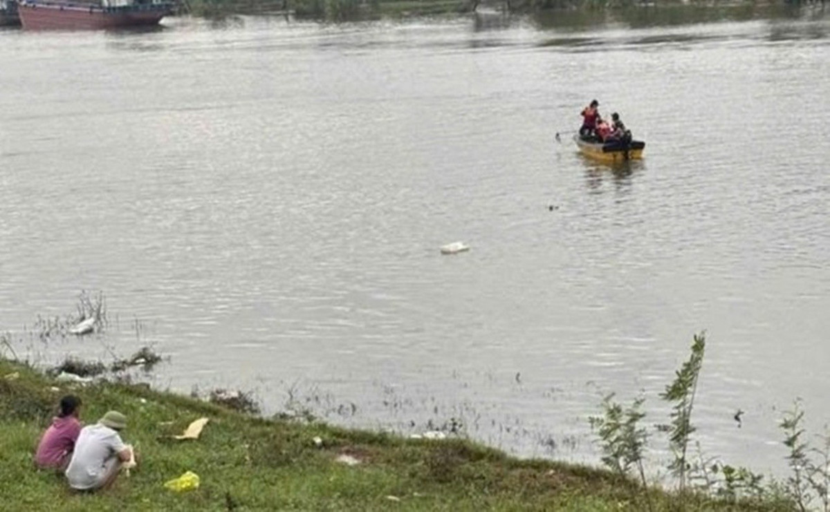 Lực lượng chức năng tìm kiếm nạn nhân trên sông Đáy.