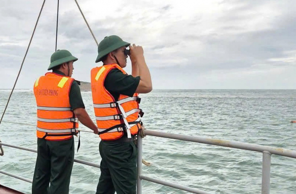 CBCS Đồn biên phòng Vĩnh Hải đi tàu cao tốc ra vùng biển Bình Tiên phối hợp ngư dân và chính quyền xã Công Hải tìm kiếm nạn nhân.