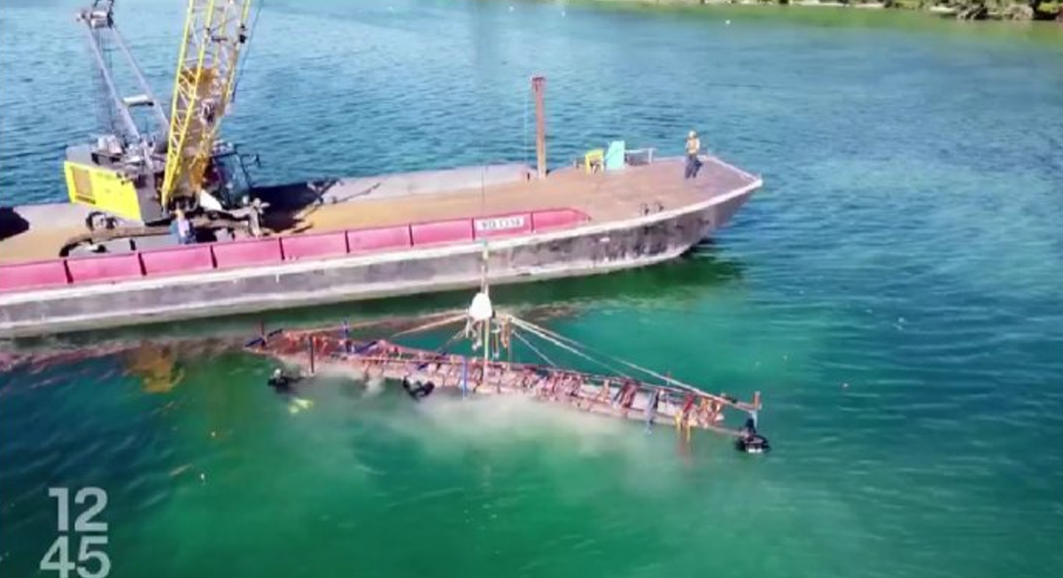 Theo Sở Khảo Cổ Học Bang Vaud, chiếc xuồng độc mộc này dài 13 mét, nằm ở độ sâu 3,5 mét ở bờ phía bắc của Hồ Neuchâtel. Ảnh: @ Sở Khảo Cổ Học Bang Vaud.