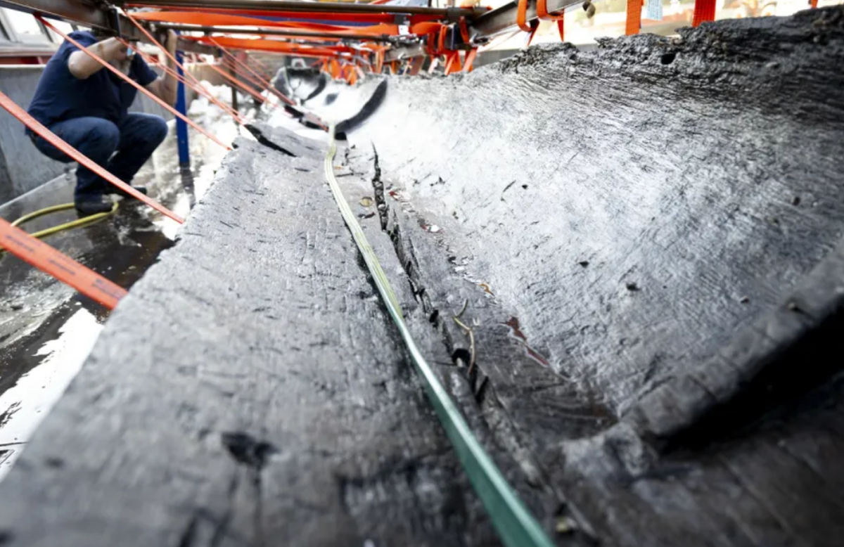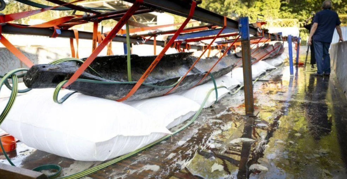 Chiếc xuồng hiện đã được chuyển đến phòng thí nghiệm khảo cổ để phân tích chuyên sâu. Các nhà khảo cổ học đang xem xét nó để tìm hiểu xem nó chứa đựng những manh mối gì về cuộc sống thời đó cách đây 2.500 năm trước. Ảnh: @ Sở Khảo Cổ Học Bang Vaud.
