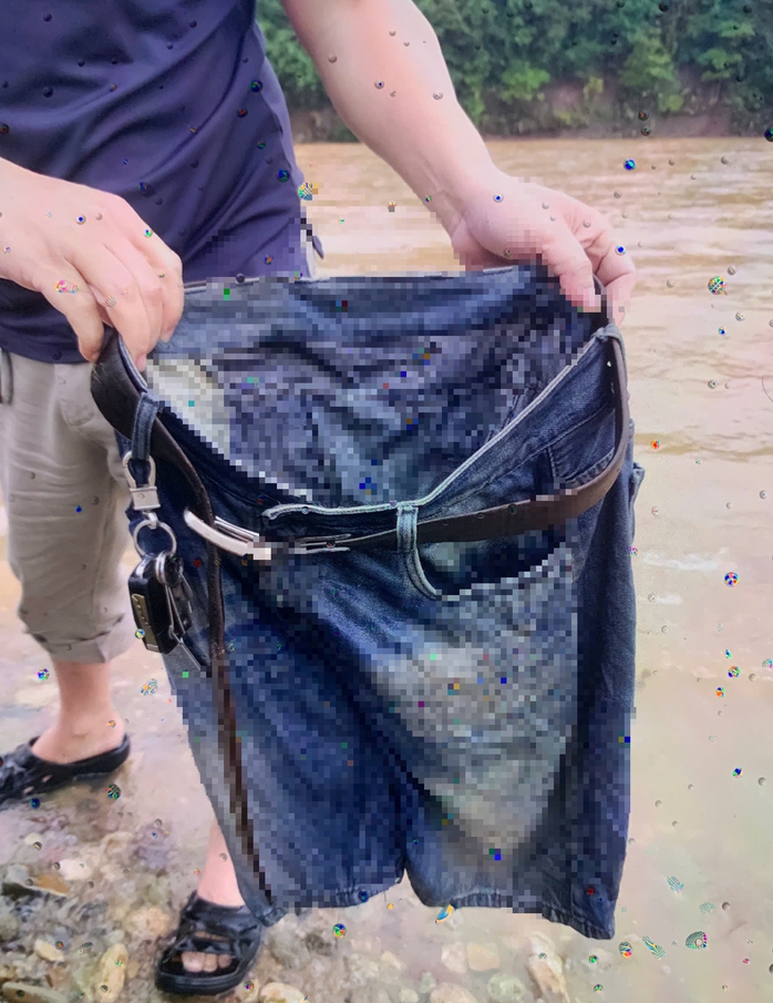 Chiếc quần cùng thắt lưng, chìa khóa của tài xế mất tích được tìm thấy cách vị trí gặp nạn khoảng 5 km. Ảnh: Phạm Văn