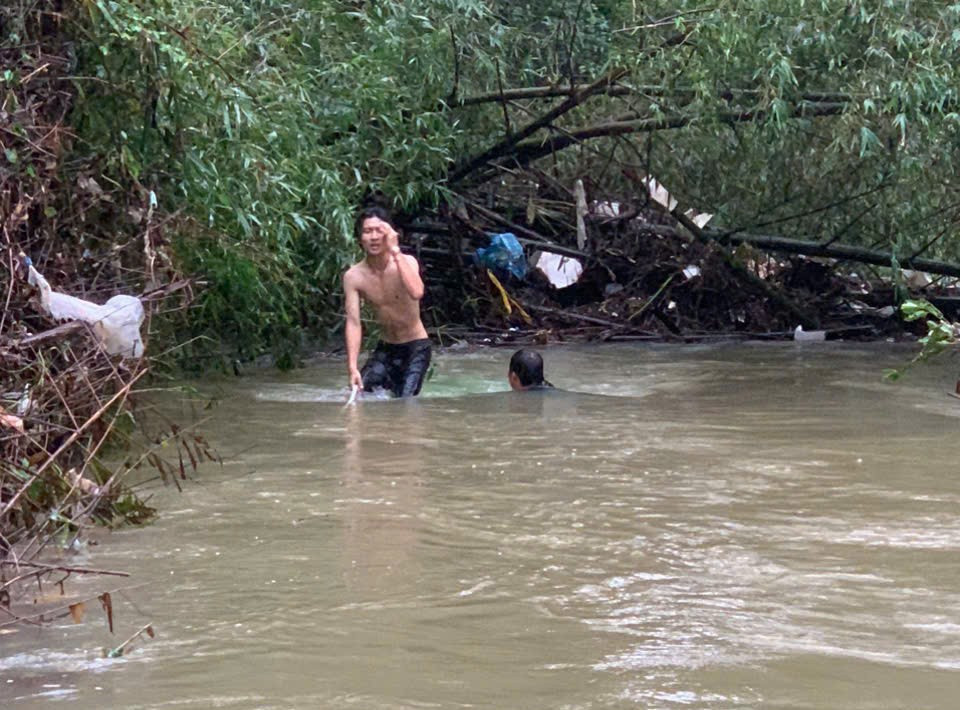Khi đi đến vị trí trên thì xe hỏng máy, gặp lúc mưa to, nước nguồn đổ về dâng lên nhanh.