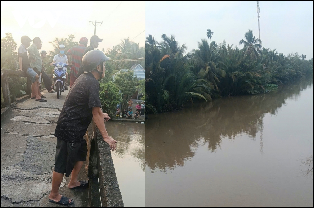 Cầu Ba Cá (xã Lương Hòa Lạc, tỉnh Đồng Tháp) nơi xảy ra vụ việc thanh niên nhảy xuống dòng nước