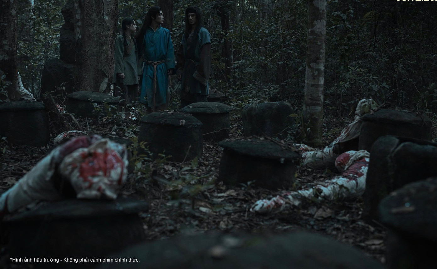 Phim trường rộng gần một ha, được dựng thủ công với những ngôi nhà tre, khu tế lễ, giếng cổ và cánh rừng được gọi là Ải Mắt Người, nơi cây cối mang hình dáng dị thường. Đạo diễn khẳng định toàn bộ không gian được dựng thật, không sử dụng kỹ xảo máy tính, để khán giả cảm nhận “hơi thở của đất và sương rừng”.