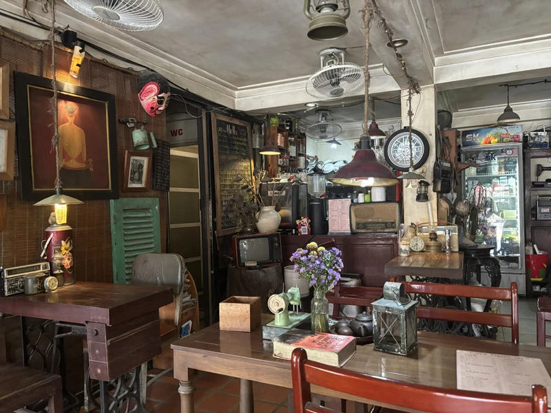Không gian quán cà phê Tigon với nhiều đồ trang trí mang phong cách hoài cổ.