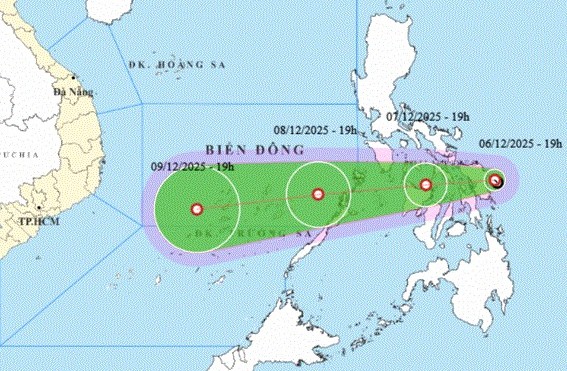 Hồi 19 giờ ngày 06/12, vị trí tâm áp thấp nhiệt đới ở vào khoảng 11,9 độ Vĩ Bắc; 125,8 độ Kinh Đông, trên vùng ven biển phía Đông của khu vực miền Trung Philippines.
