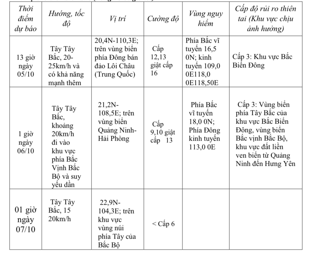 Mưa lớn: Từ đêm 5/10 đến ngày 7/10, tỉnh Cao Bằng có mưa vừa, mưa to và dông. Lượng mưa dự báo từ 50 - 80mm. Các xã khu vực phía đông, phía nam và các xã khu vực vùng núi phía Tây của tỉnh có nơi trên 120mm.