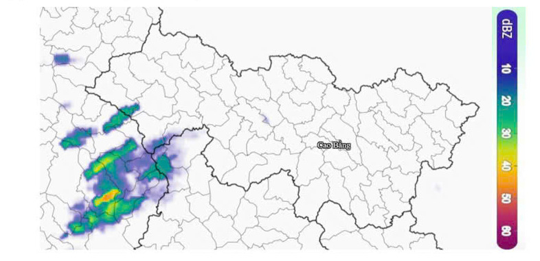 Ảnh radar thời tiết tỉnh Cao Bằng.