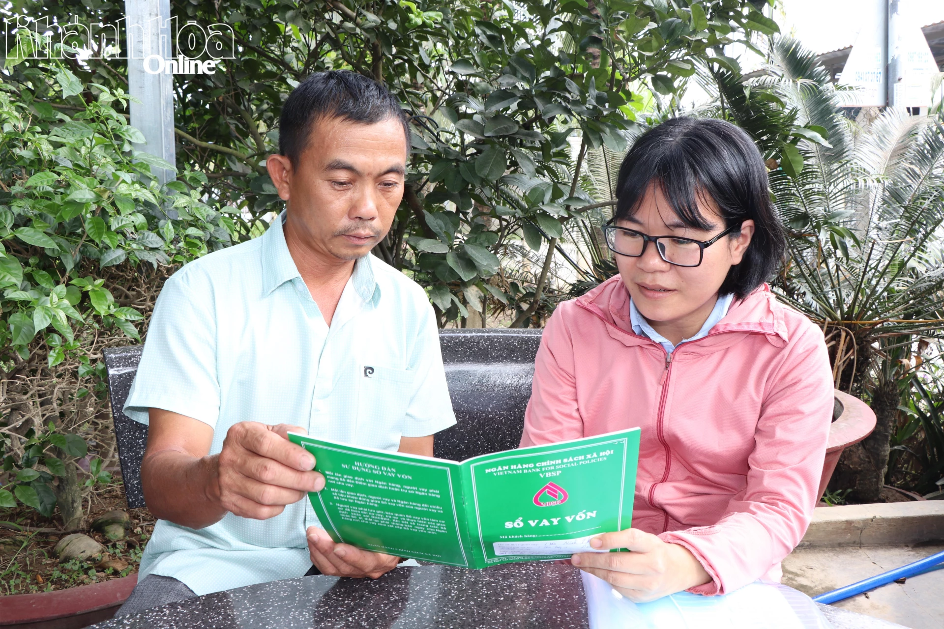 Cán bộ Phòng giao dịch Ngân hàng Chính sách xã hội Diên Khánh tuyên truyền chính sách tín dụng cho hộ vay.