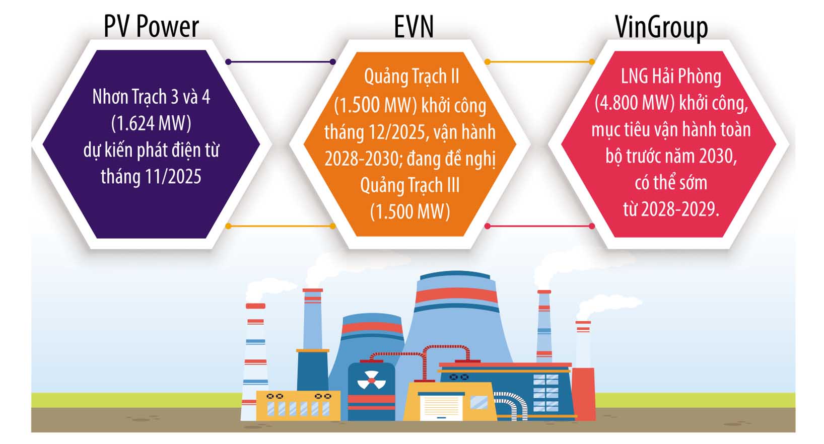 Sau Nhơn Trạch 3 và 4, nhiều dự án điện khí LNG khác đã được cấp Giấy chứng nhận đầu tư. Tuy nhiên, mối quan tâm lớn nhất hiện nay của ngành điện đang hướng về các dự án LNG do EVN và Tập đoàn VinGroup triển khai.