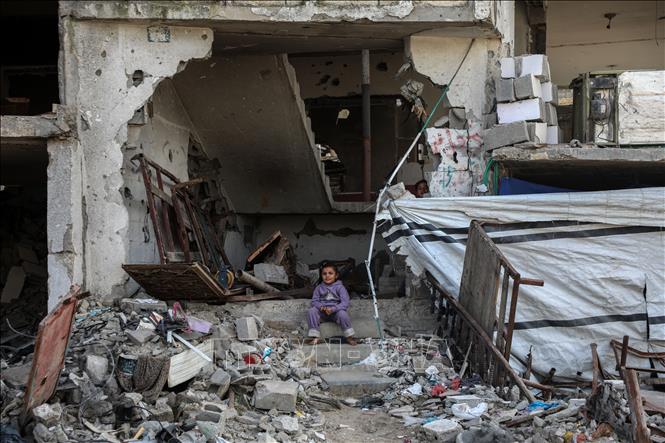 Tòa nhà bị phá hủy do xung đột tại Dải Gaza. Ảnh: THX/TTXVN
