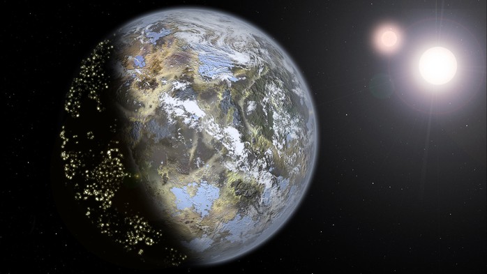 Ảnh đồ họa mô tả một thế giới giống Trái Đất, có người ngoài hành tinh sinh sống - Ảnh: SCI-NEWS