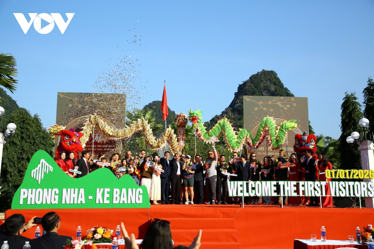 Trong buổi sáng đầu năm mới 2026, Vườn Quốc gia Phong Nha - Kẻ Bàng, tỉnh Quảng Trị chào đón 69 vị khách đầu tiên, trong đó có 39 du khách quốc tế đến từ Mỹ, Romania, Ấn Độ, Bỉ, Monaco, Đức, UAE... và 30 du khách trong nước đến từ TP Hồ Chí Minh, TP Hà Nội, thành phố Huế, TP Đà Nẵng.