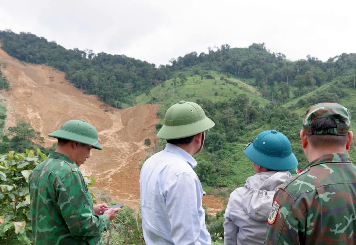 Lãnh đạo TP Đà Nẵng kiểm tra tại hiện trường vụ sạt lở khiến 3 người mất tích ở xã biên giới Hùng Sơn, TP Đà Nẵng.
