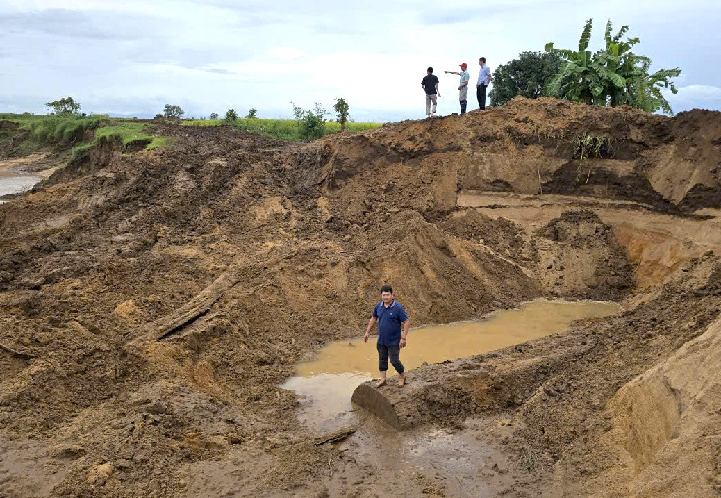 Hiện trường thân gỗ lớn bị đào bới, cưa ở bờ sông Ayun.